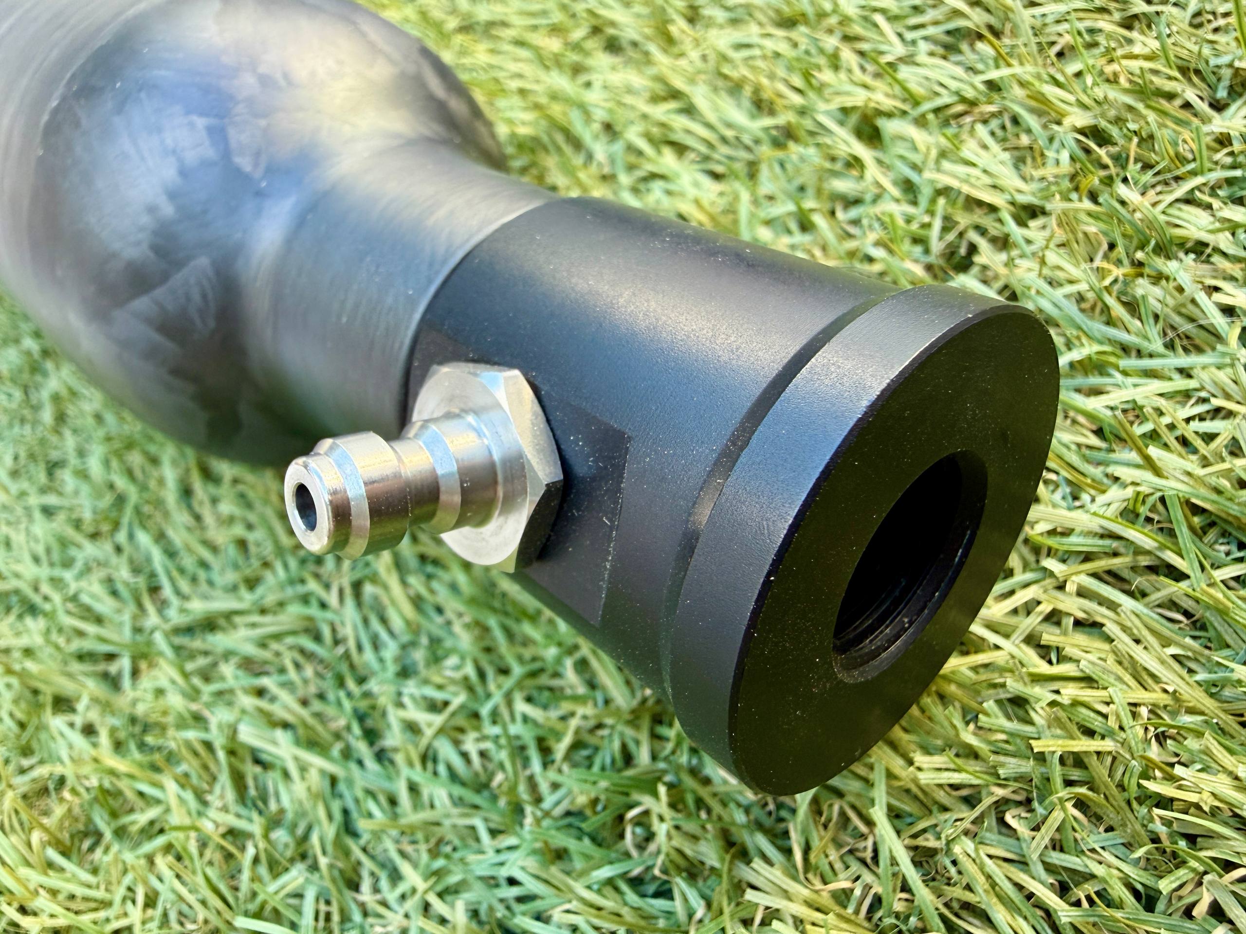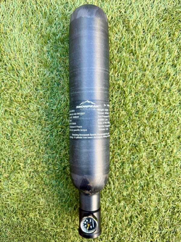 Cuenta con una capacidad de 500 cc y soporta una presión máxima de trabajo de hasta 300 bar, ofreciendo una gran autonomía de disparo sin necesidad de recargas frecuentes. Su peso reducido de tan solo 600 gramos la convierte en una opción ideal para mantener el equilibrio y la manejabilidad del arma.