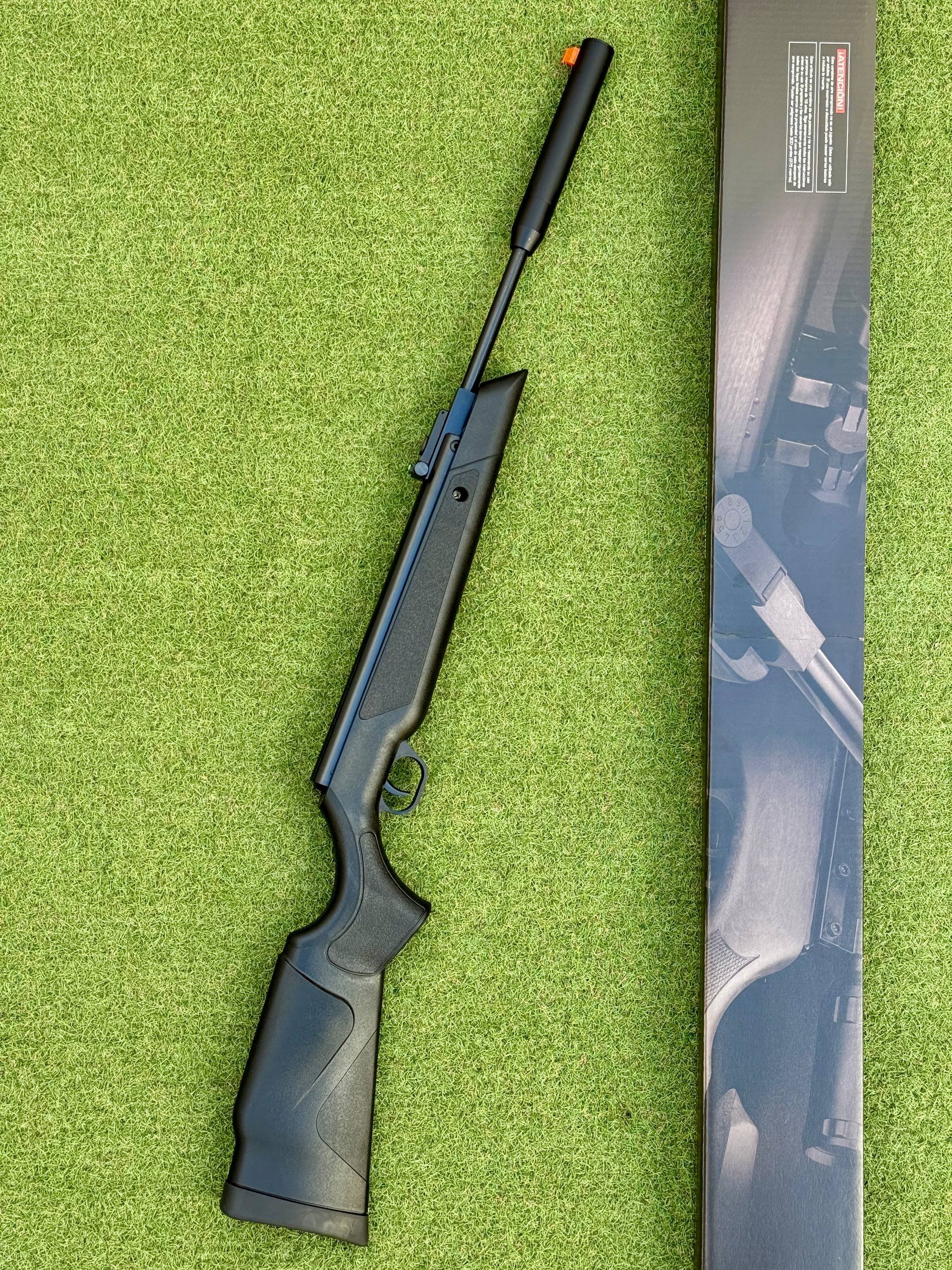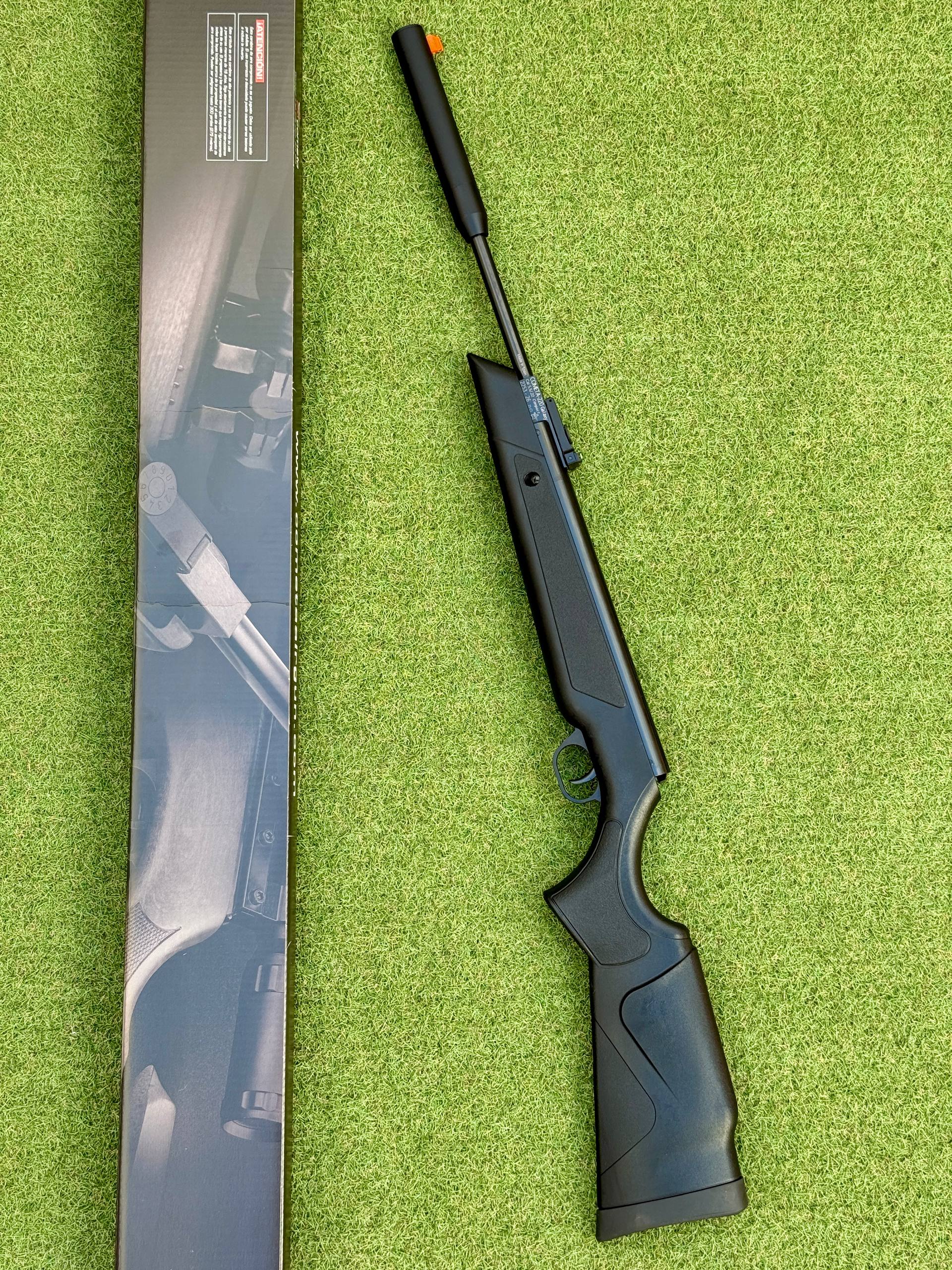 Cometa 220 Compact Galaxy. Carabina de aire comprimido potenciada por muelle, ligera y precisa, con cañón compacto con moderador, miras Truglo y culata sintética resistente.